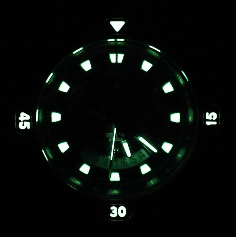 除了表盤上的時(shí)針和分針外,還有計(jì)時(shí)分針和鬧鐘指針(稍后會(huì)詳細(xì)介紹)。首先,雖然功能簡(jiǎn)單,但我覺得時(shí)針和分針的尺寸可以增加一點(diǎn),尤其是為了與大小時(shí)指示器更和諧地搭配。指針和指示器上的 SuperLumiNova lume 也非常有效。計(jì)時(shí)碼表分針在 2 點(diǎn)鐘位置的倒計(jì)時(shí)開始處有一個(gè)偏心的“0”位置。作為表盤對(duì)稱的粉絲,我有點(diǎn)希望它位于 12 點(diǎn)鐘位置。